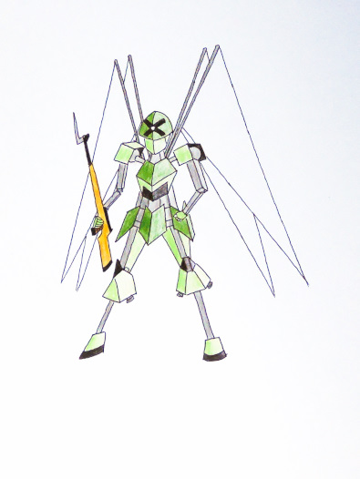 - 敵の最新型コスモパペット。背中の四枚の羽でステルス性能を発揮する。