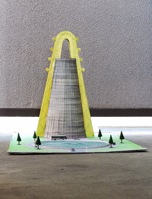 ウエハースの上部が展望台で、クリーム部分はグッゲンハイム美術館風の螺旋ギャラリーになっている。
