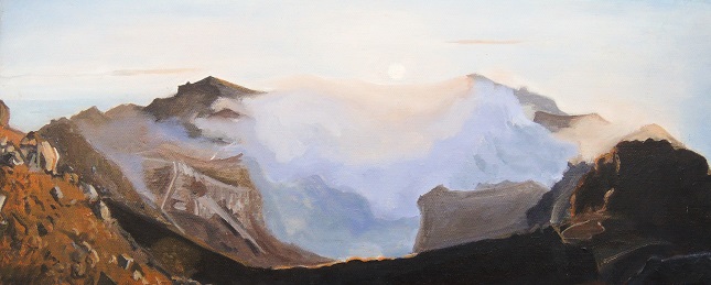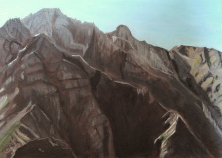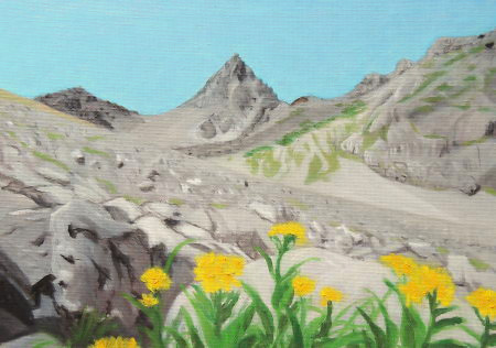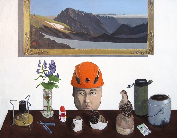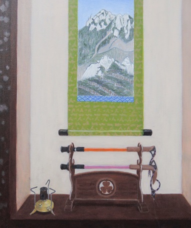 - 折り紙と作家が好きな山岳画との組み合わせ。