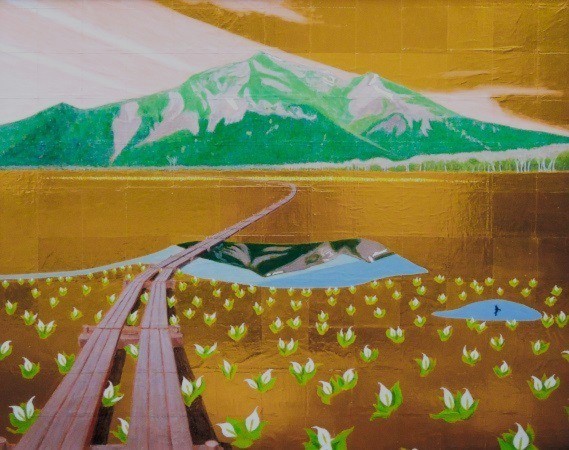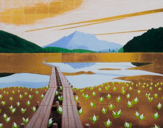 金箔を用いることを「よし」とせず、油絵の具で再現している。