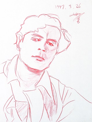 - この絵の如く、作家は頑固一徹の「石頭」である。