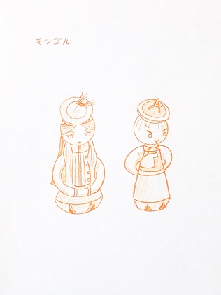 - けん玉は形が「♀」に似ていることから作家が選んだ「象徴物」。玉が地球であるのは「未来の地球は女性の活躍にかかっている」ことを示す。