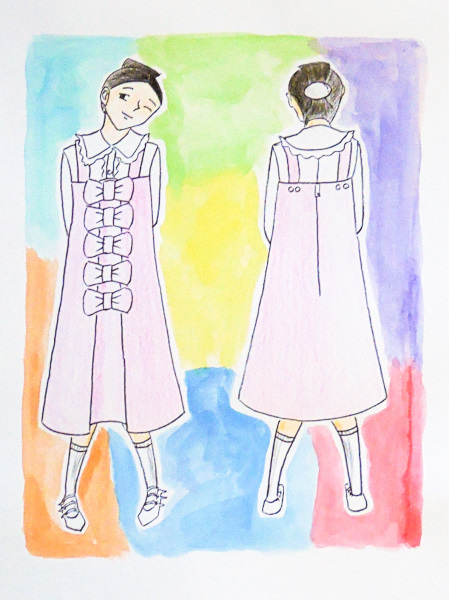 リボンが特徴的なジャンパースカート(アパレルデザイン)