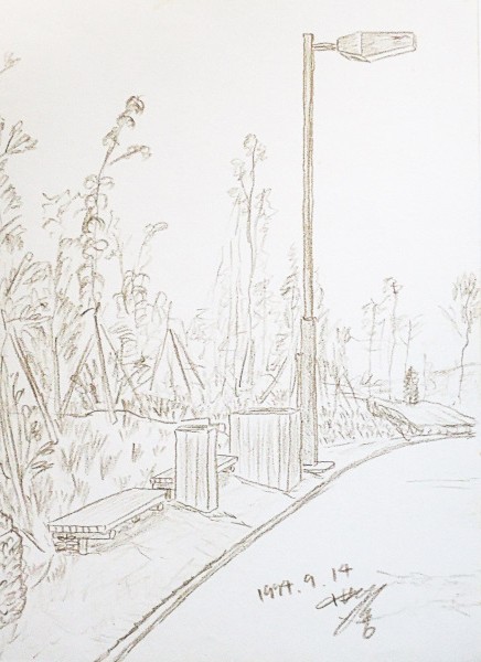 - これは作家が中学二年生の春に写生会で描いた水彩画である。未完成だったため、逆に手元に残った。